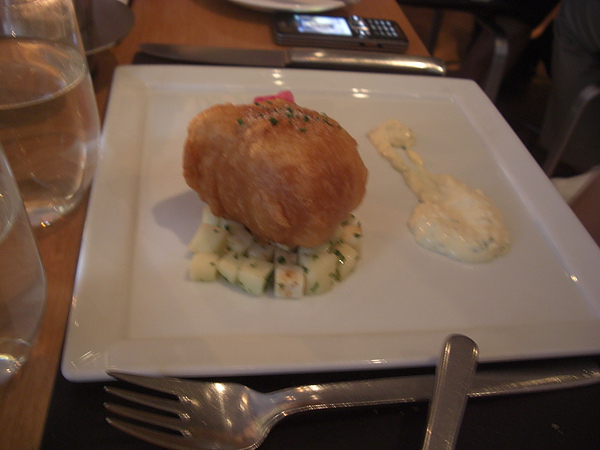 Crispy Atlantic Cod 原理跟麥香魚一樣,但裡頭的鱈魚肉質真細嫩啊! 這是所有點的主菜中我第二喜歡的。(不用說我的鮪魚又敬陪末座。)