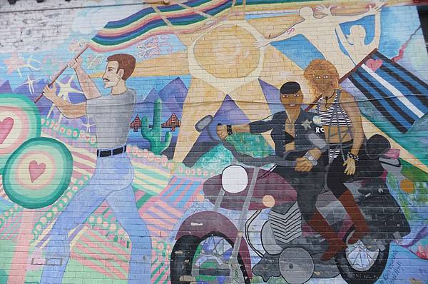 San Francisco 的 Castro 區是從電影 Milk 裡認識的。老實說我對這部評價不錯的電影沒什麼感覺,但一向嚮往自由反叛的精神,所以把 Castro 列為來 San Francisco 必到的景點。Castro 是美國同志運動裡的重要地標,也是 LGBTQIA(LGBT 早就知道了,這次學到 QIA) 的聚集地, 從 The Mission/16th St. BART 出站往 Castro 的路上可以看到彩虹旗的密度越來越高,壁畫的主題也比較歡樂。