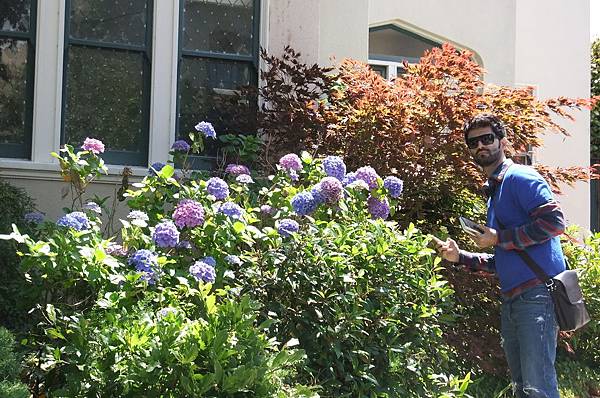 Karen 說在院子裡種繡球花(Hydangea)是從日本傳來的習俗,意思是家裡有適婚年齡的女兒,所以我們看到花開時非常興奮,不過這次中東哥硬是快了一步。還聽說 Robin Williams 沒發跡前住在這附近(19th St.) 但不知道實際是哪棟。