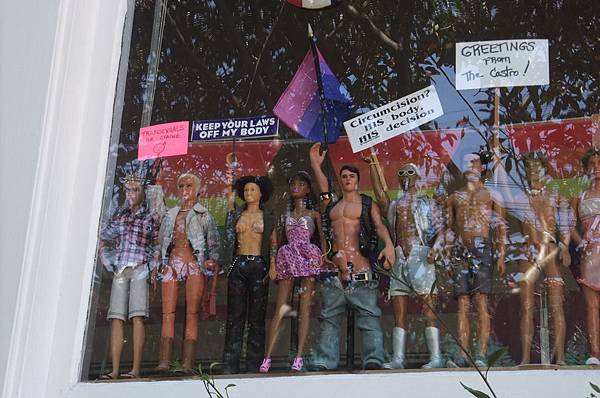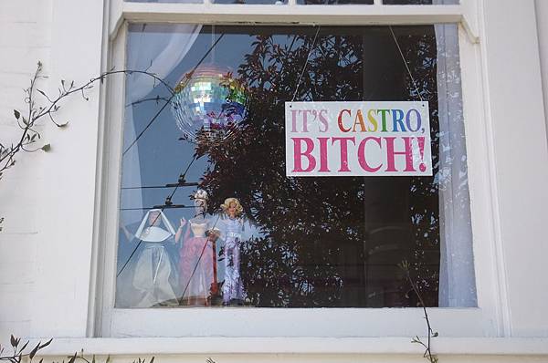 途中看到一些改建的新式建築參雜其中,大部分都很好看,但 Karen 深惡痛絕,直說它們遠不如老房子優雅。Castro 裡處處有驚喜,有人發現 lesbian 相親相愛的證據: