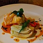 主菜是一種白色的魚,吃起來口感有點像緊實的龍蝦,不過沒有那麼濃的味道,大概是一種深海魚。特寫如下。
